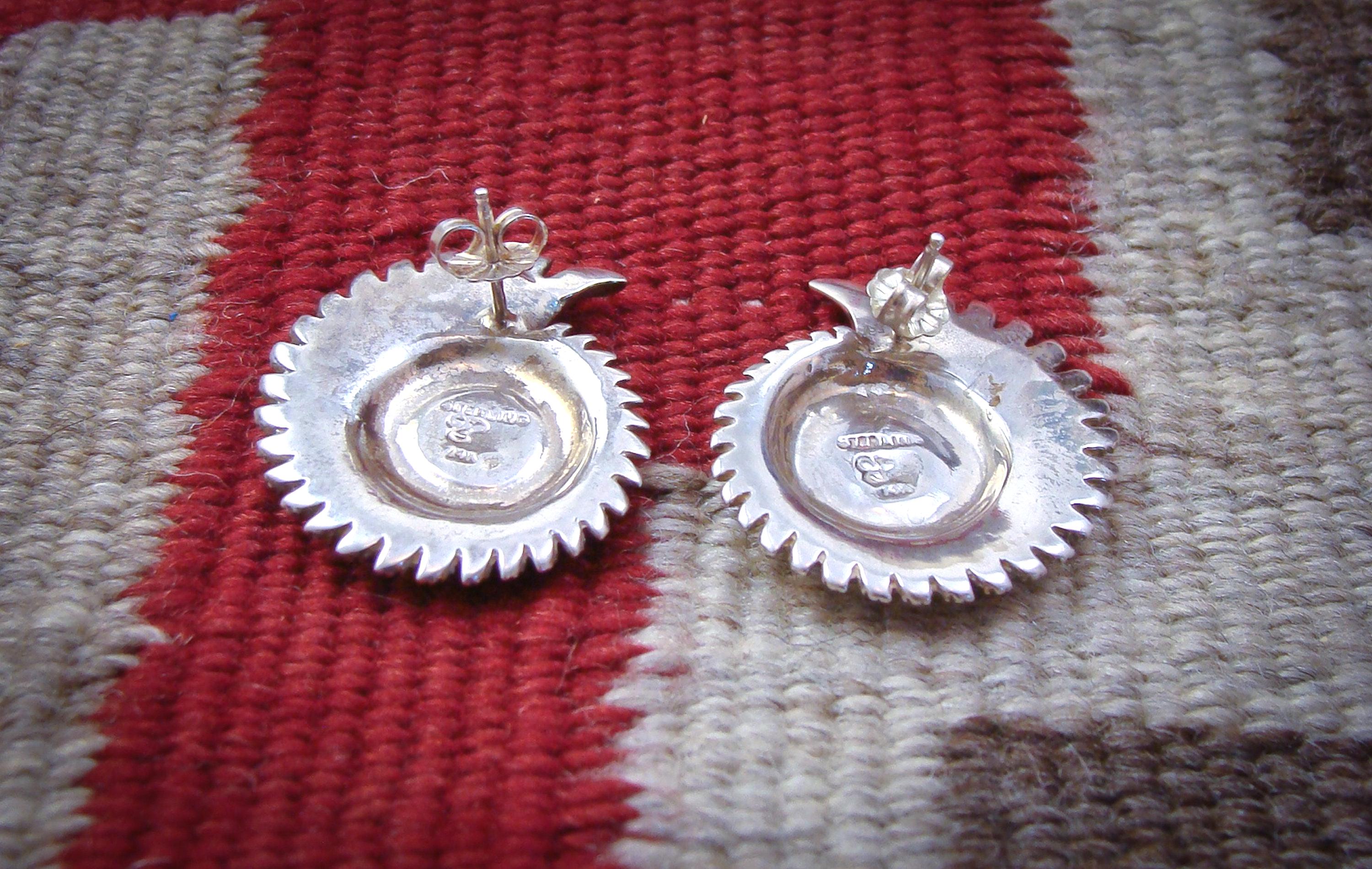 These Navajo Kokopelli earrings are handcrafted out of Sterling Silver and 14K Gold. The Kokopelli is a popular symbol that is recognized by its hunched back and flute. This is the perfect gift for a special friend. They are comfortable and lightweight for all-day wear.