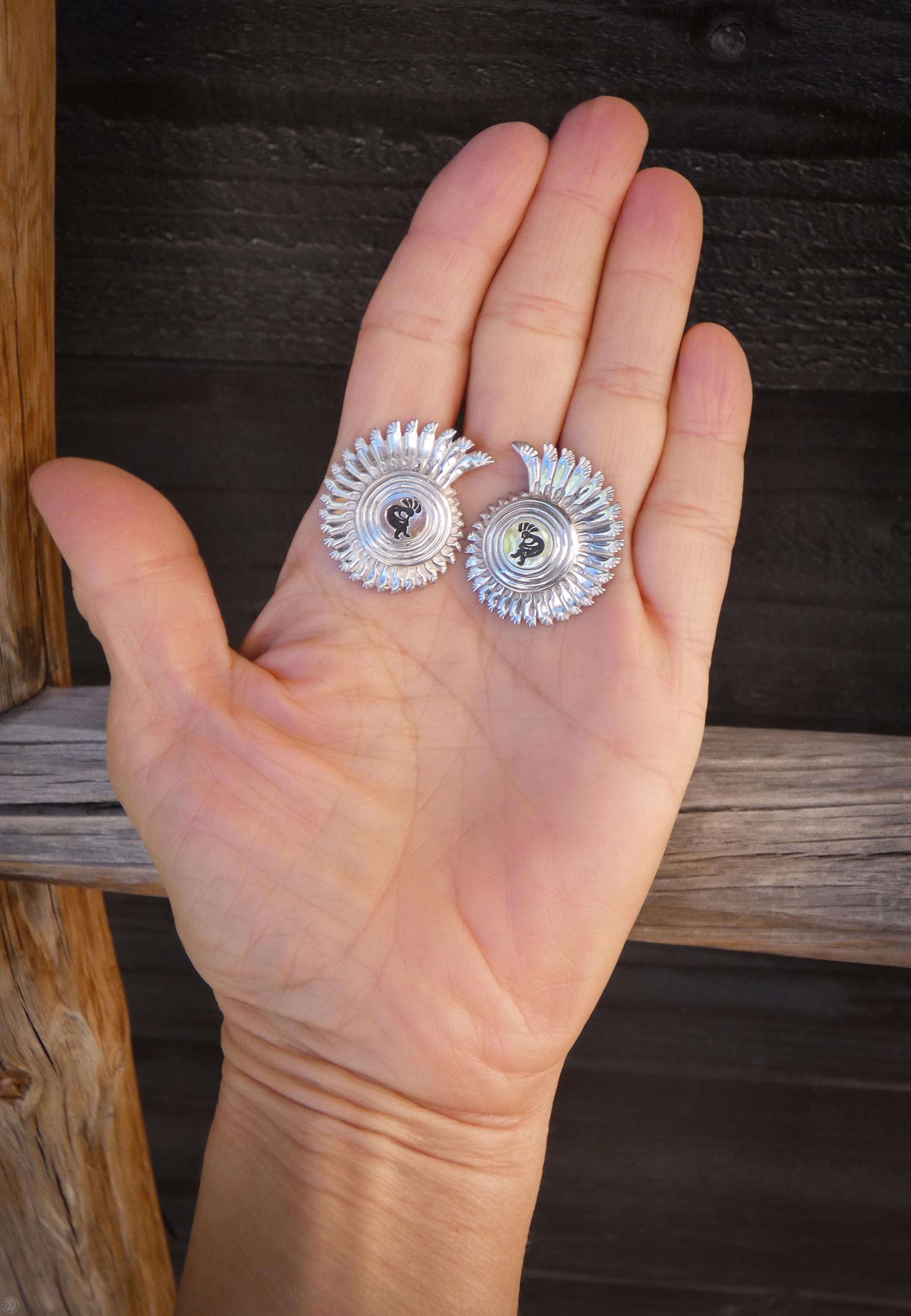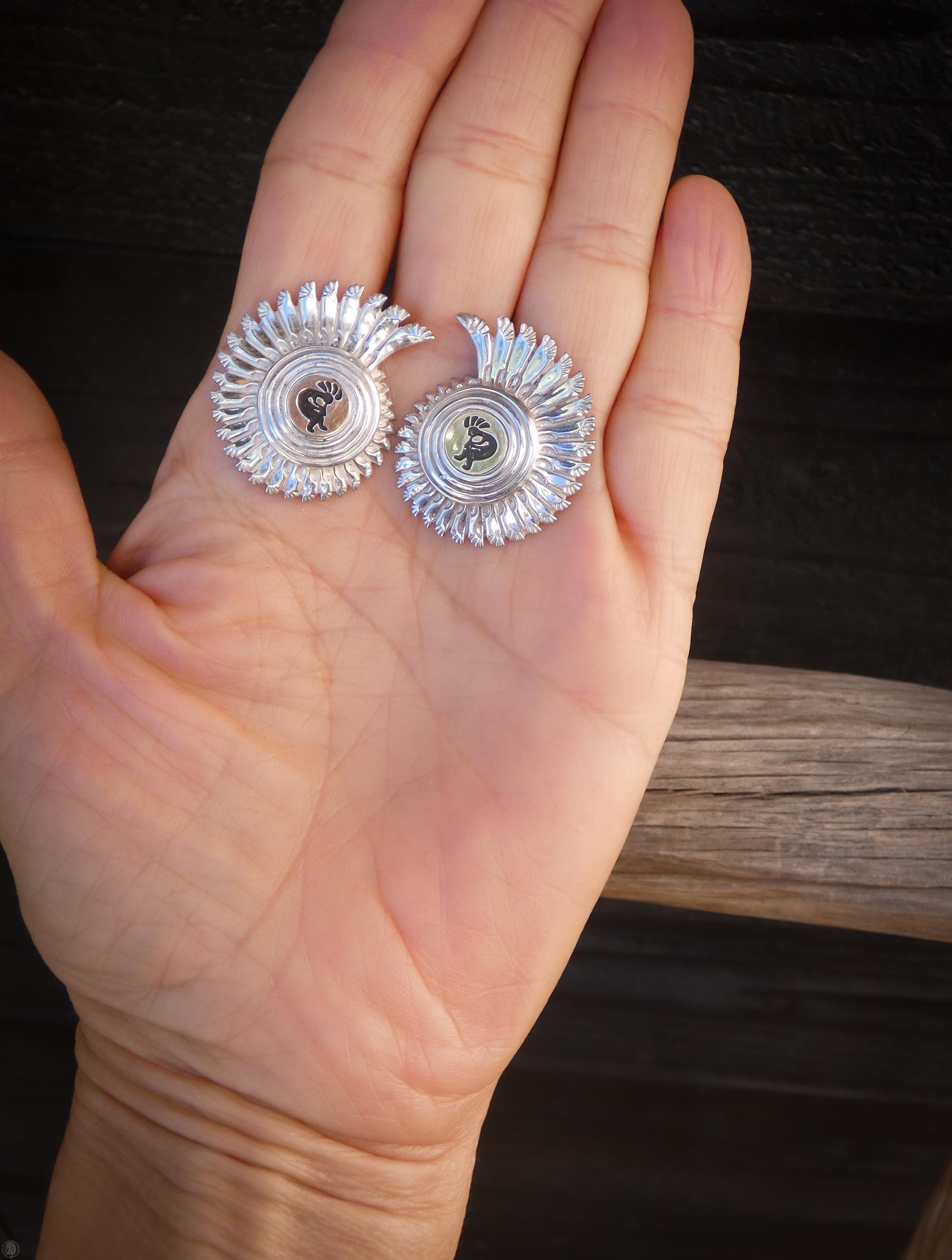 These earrings were a bit smaller then I had envisioned, but the earrings themselves are unique and well crafted. I particularly love the gold and silver mix of the piece. I simply have not seen a Kokopelli pair of earrings that I like better. Well done!