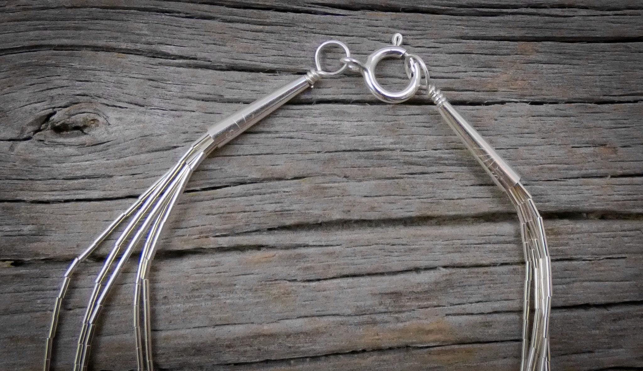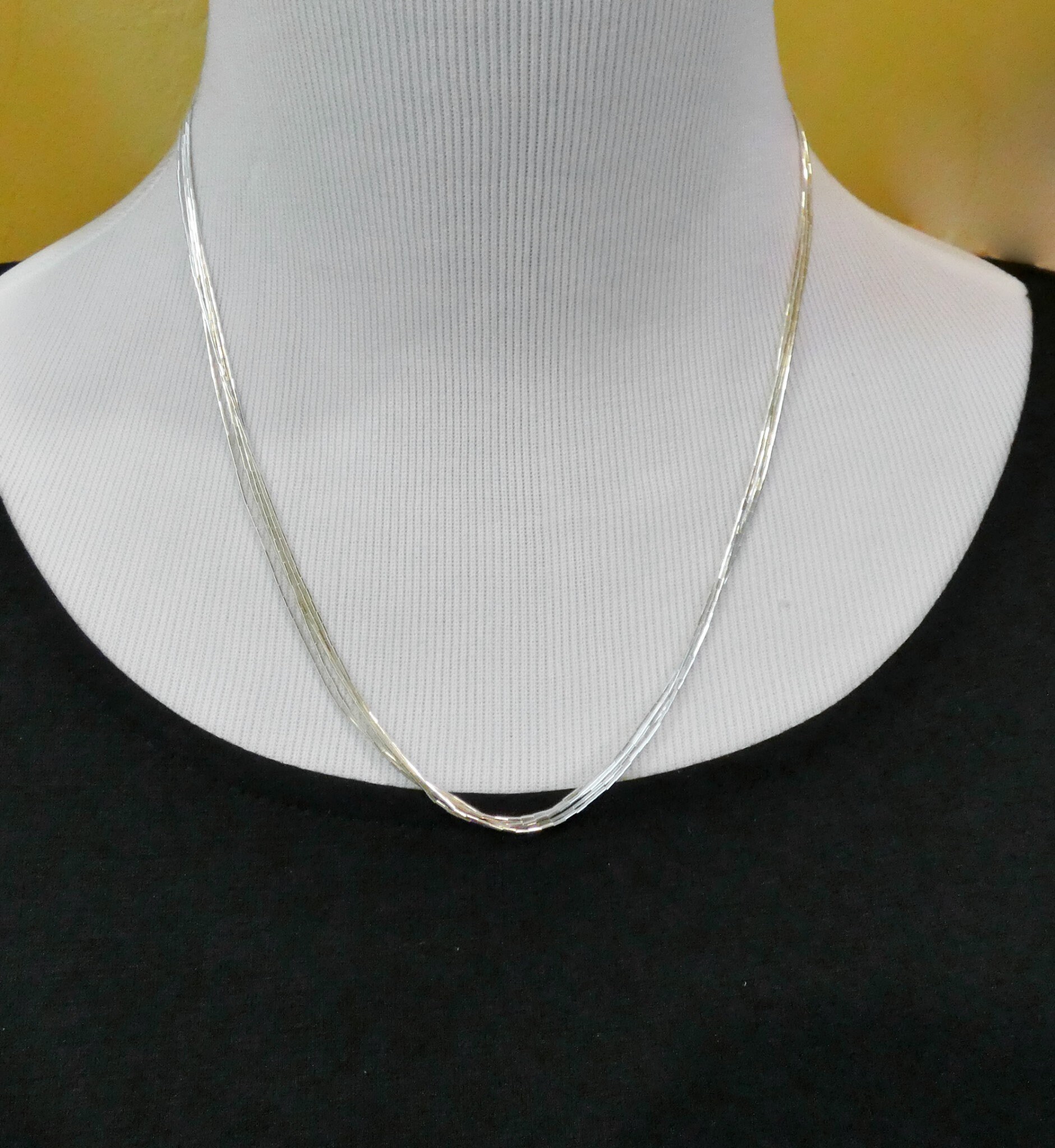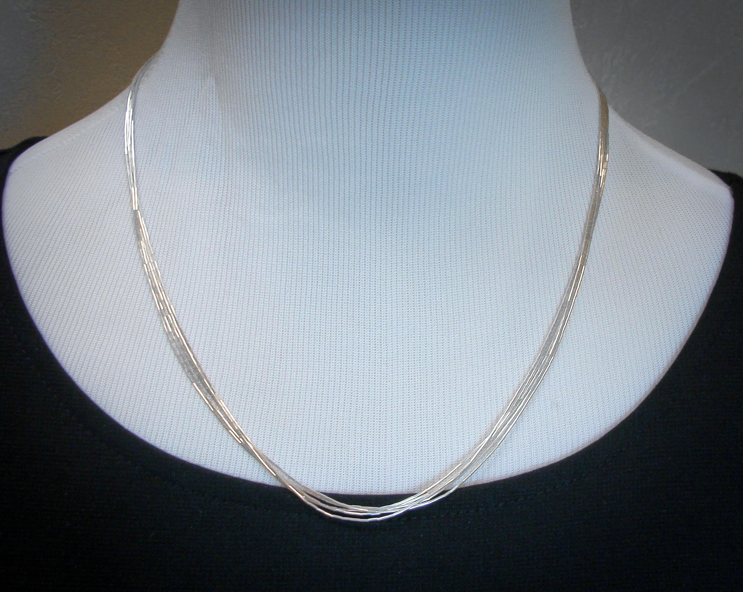 This 5 strand liquid silver bead necklace is handcrafted from sterling silver. Liquid silver flows beautifully on any woman's neck. It can be worn with casual wear or go very nicely with more formal wear. Wear it twisted or loose...the overall casual elegance makes this necklace appealing to all!