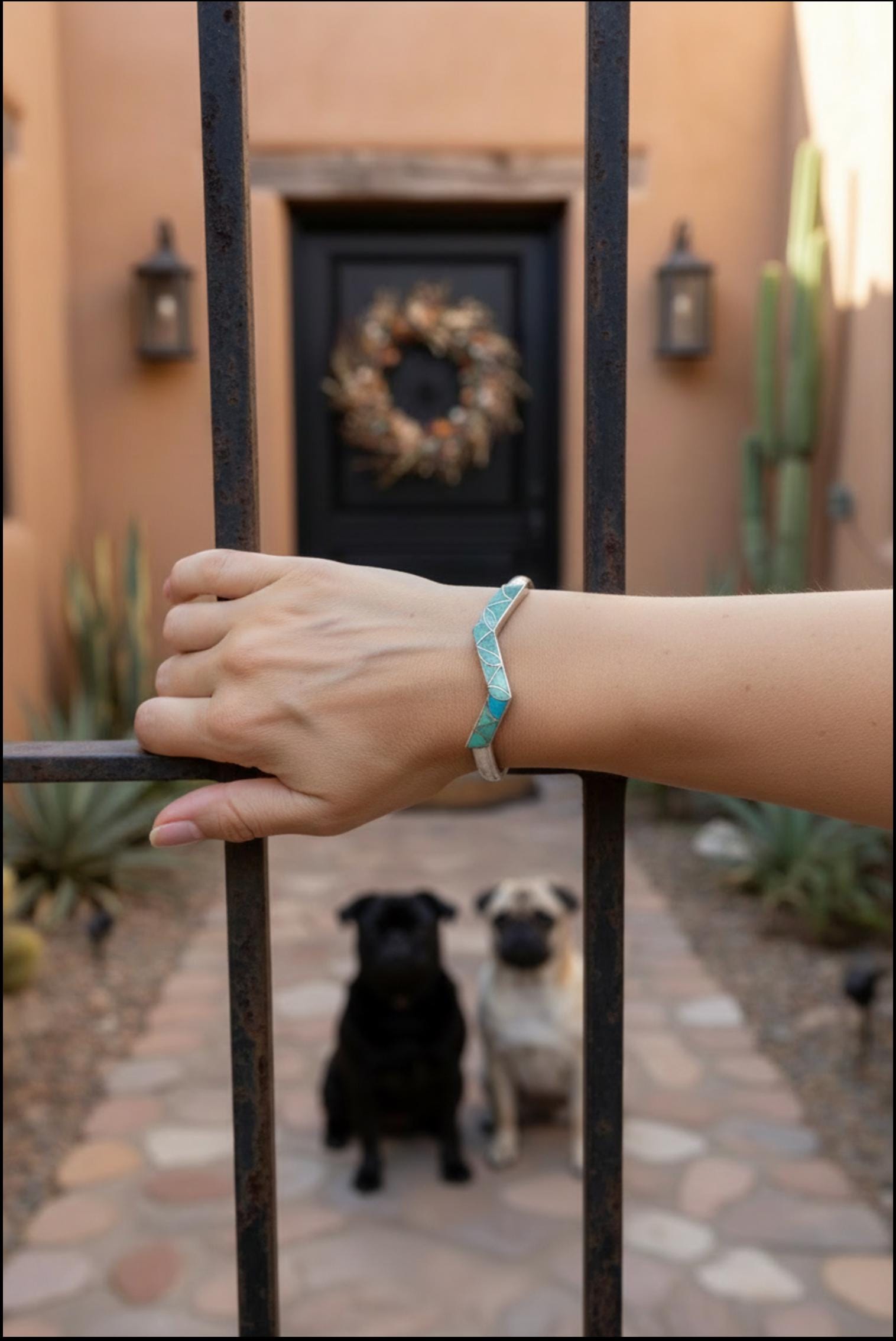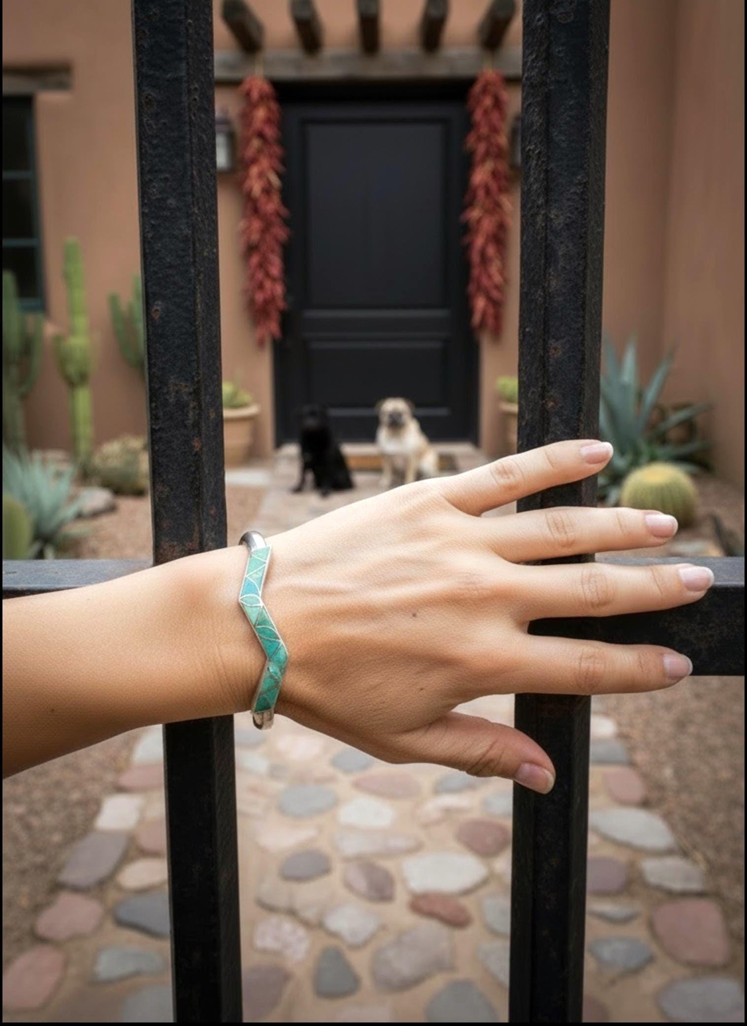 The lightning design allows the turquoise to take center stage with its sleek look and outstanding channel inlay turquoise work. Turquoise is generally known for its vivid blue color; but most folks aren't aware that several minerals make up the color of the Turquoise stone. This is a work of art, a special accessory that will be cherished for a lifetime!