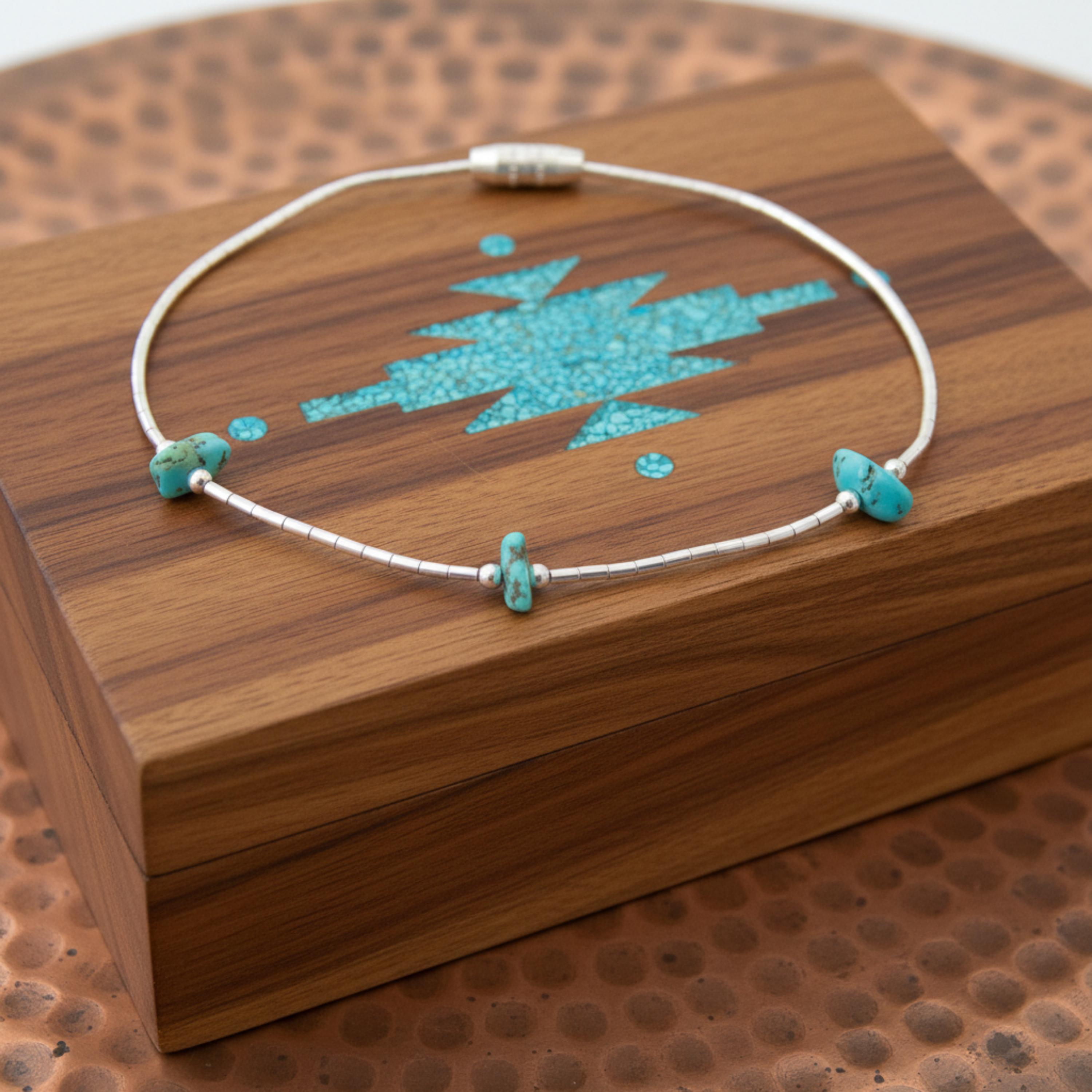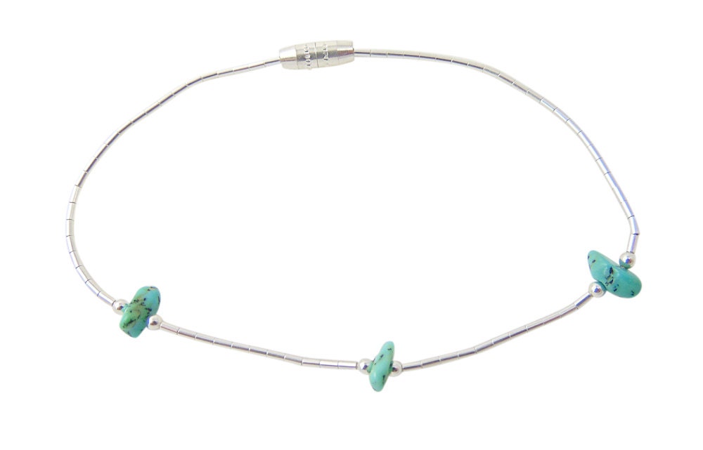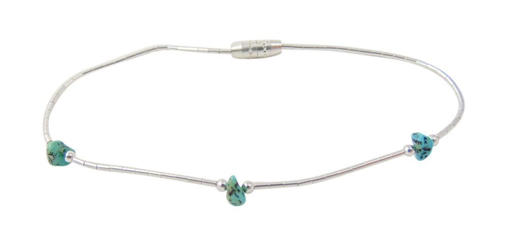 This Turquoise Nugget and Liquid Silver bracelet is handcrafted from Sterling Silver. Liquid Silver flows beautifully on any woman's wrist. It can be worn with casual wear and can also go very nicely with more formal wear. The overall casual elegance makes it a very appealing accessory.