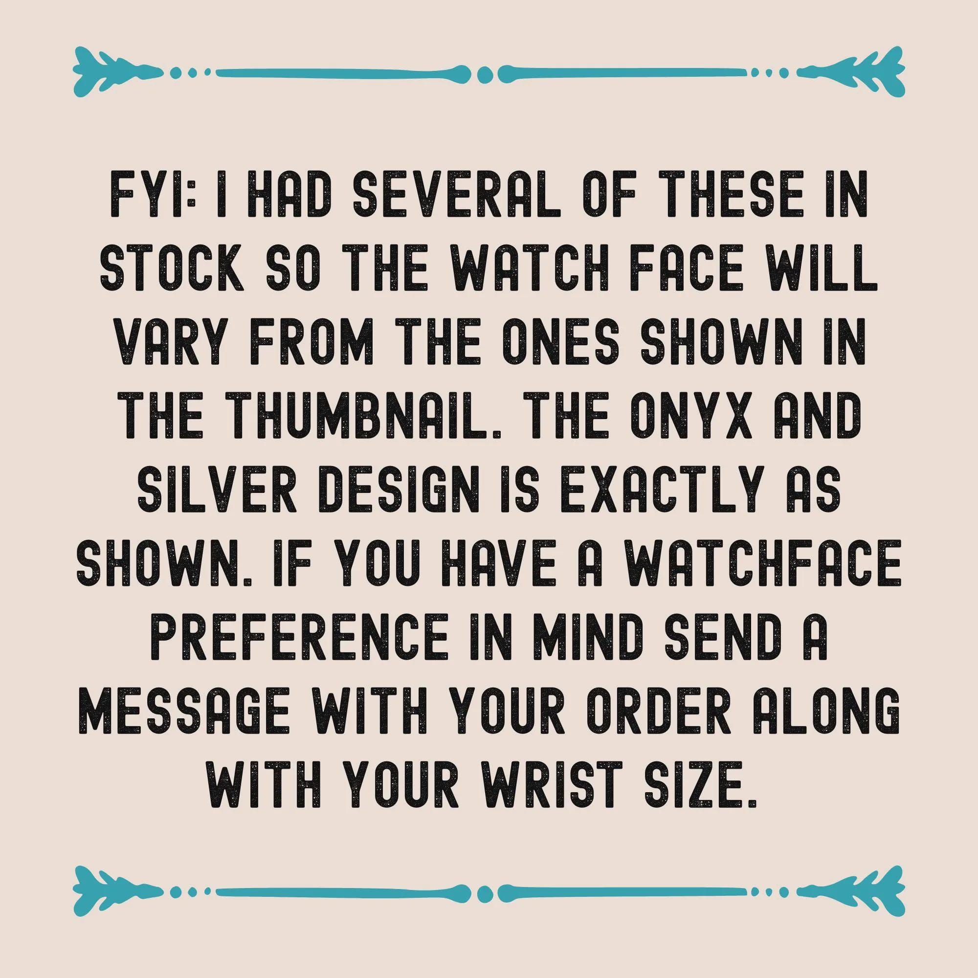 🔸NOTE🔸: I can adjust the size for you but please measure your wrist before purchase. Let me know your wrist size if it's outside the parameter of the range below. The round watchface is now available but we also have other styles, even black. If you prefer one style of watch face over the other, please send a message.
