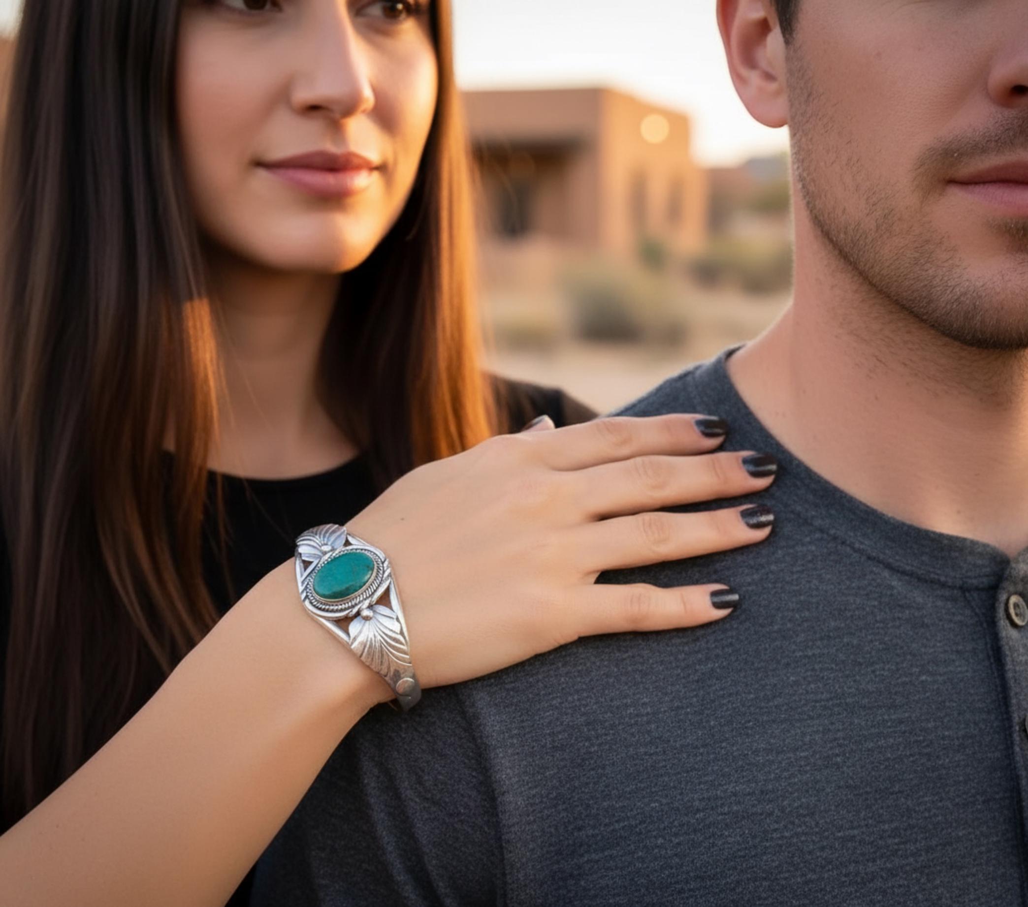 This bracelet is handcrafted with Sterling Silver and Malachite. Malachite is known for its vibrant shades of green. This is traditional Navajo craftsmanship from a bygone era, Native American artistry at its finest!