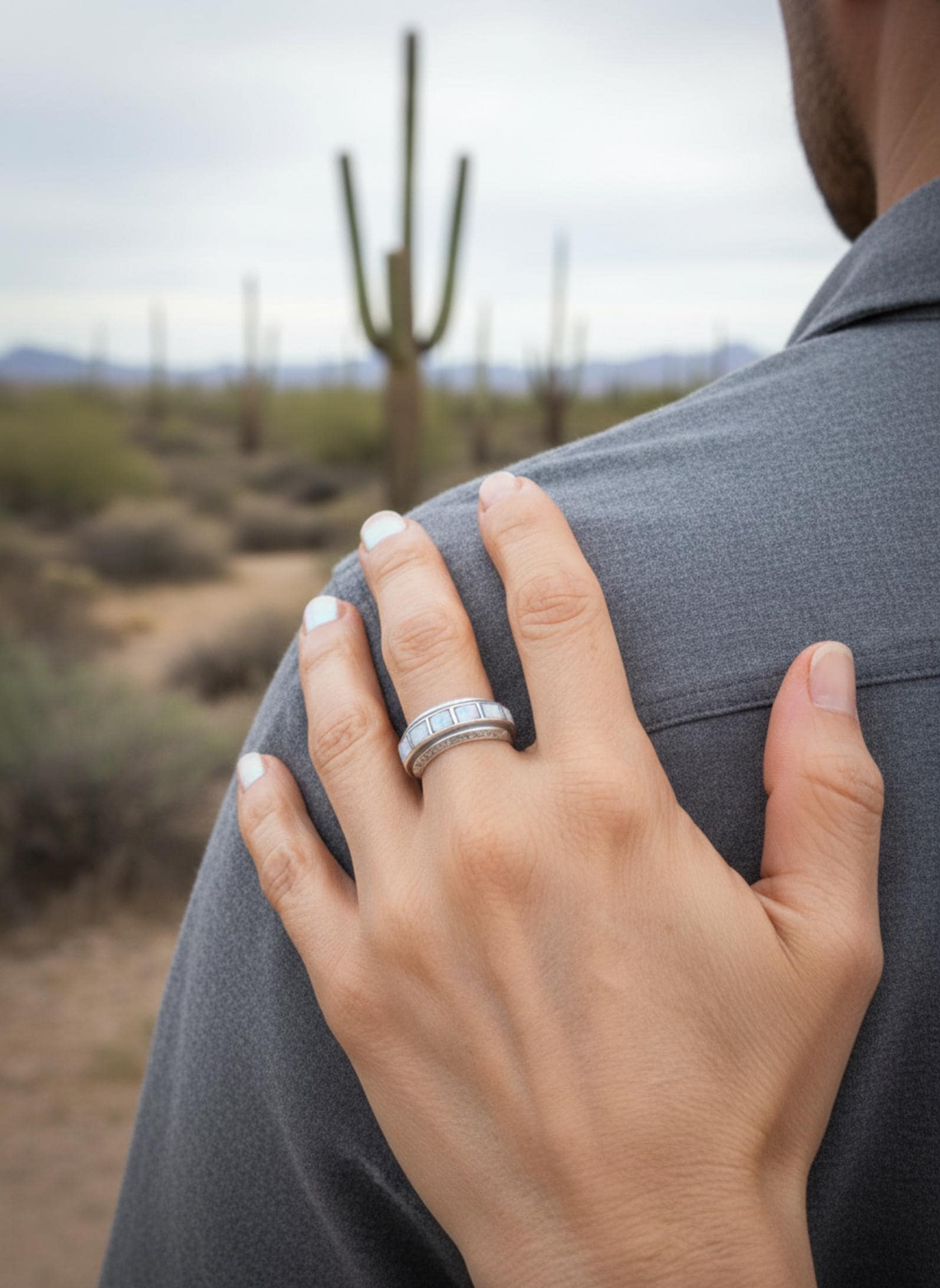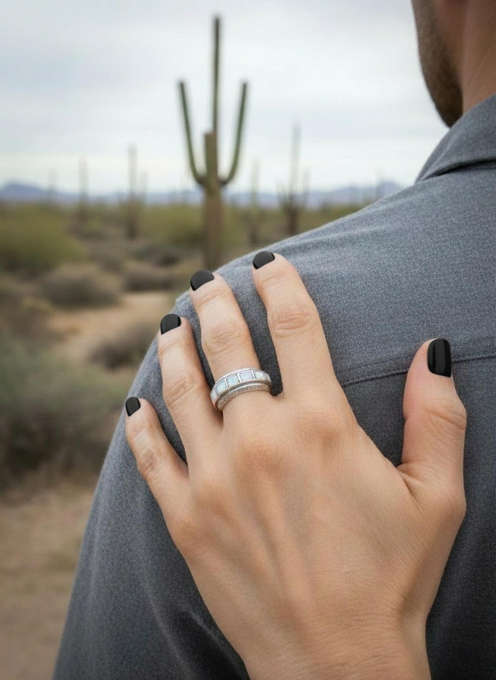 No, never. Stones are porous and will dull and darken with repeated hand washing or bathing while wearing. Only use a silver polish cloth to shine. Message me with any questions on care.