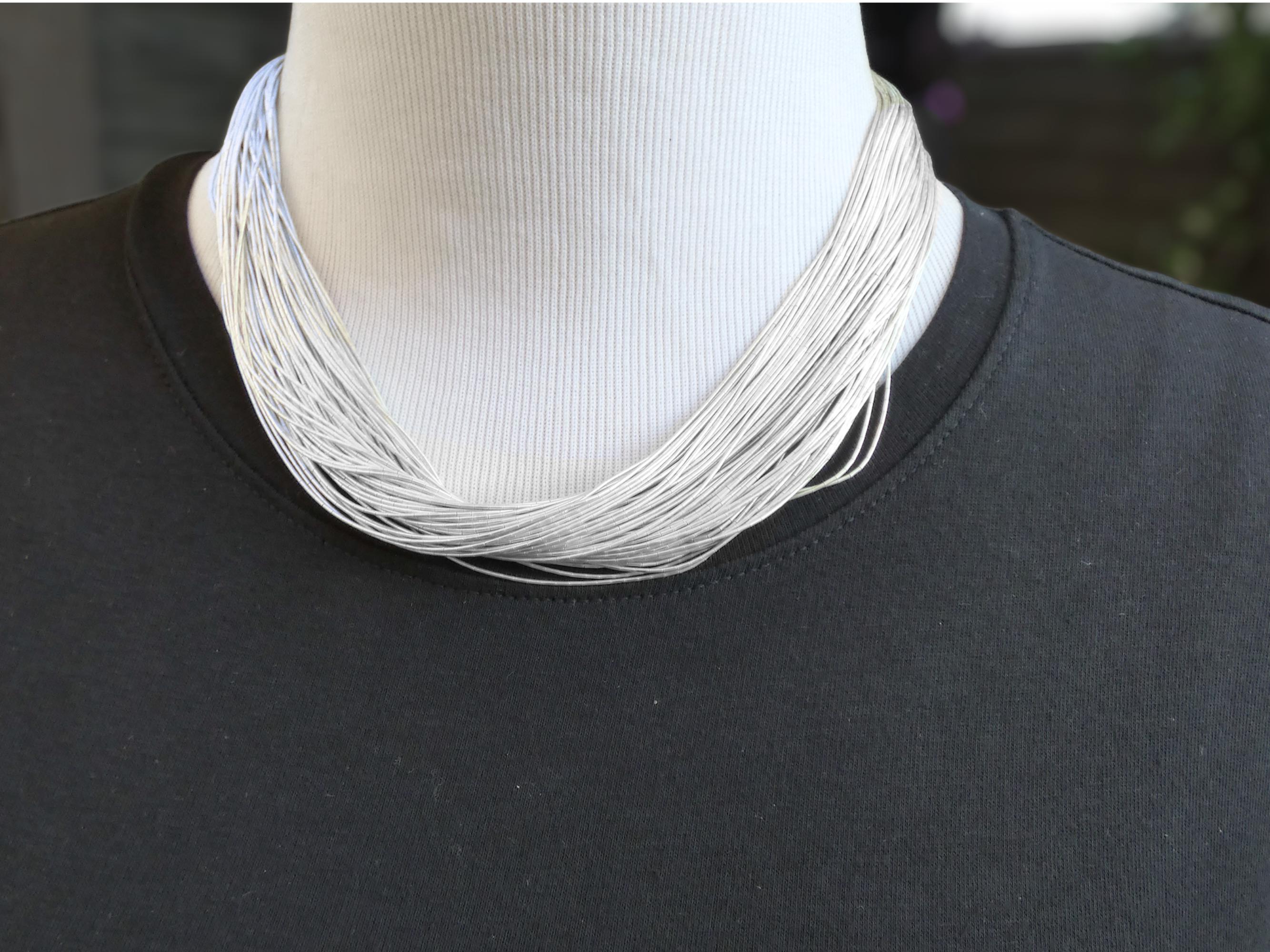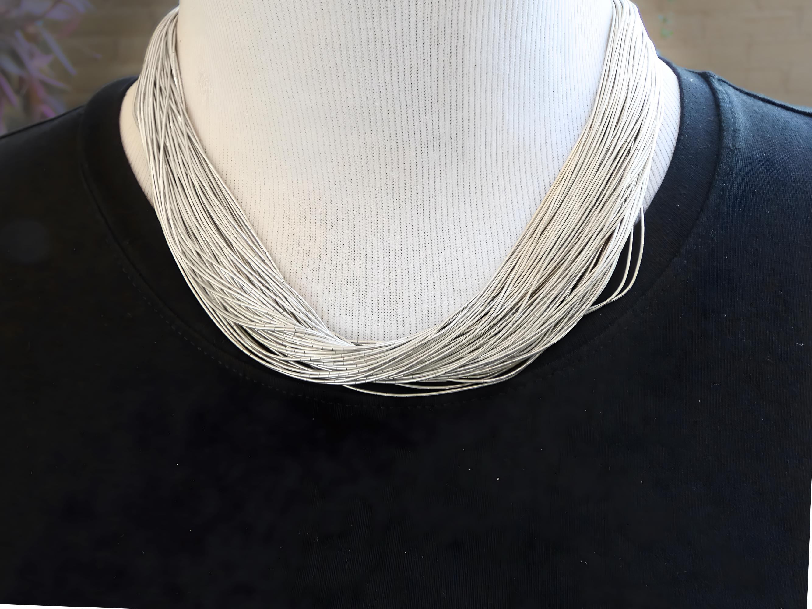 This 100 strand Liquid Silver bead necklace is handcrafted from Sterling Silver. Liquid Silver flows beautifully on any woman's neck. It can be worn with casual wear and they can also go very nicely with more formal wear.