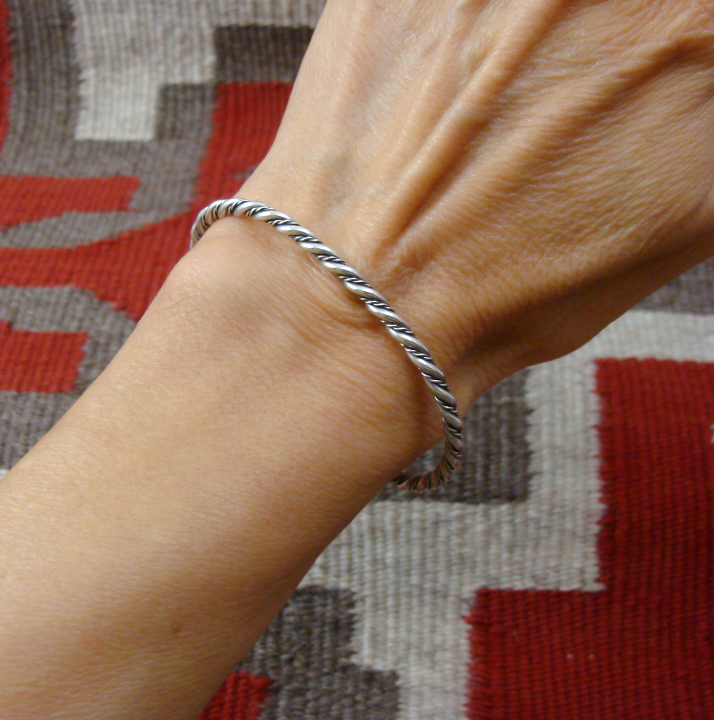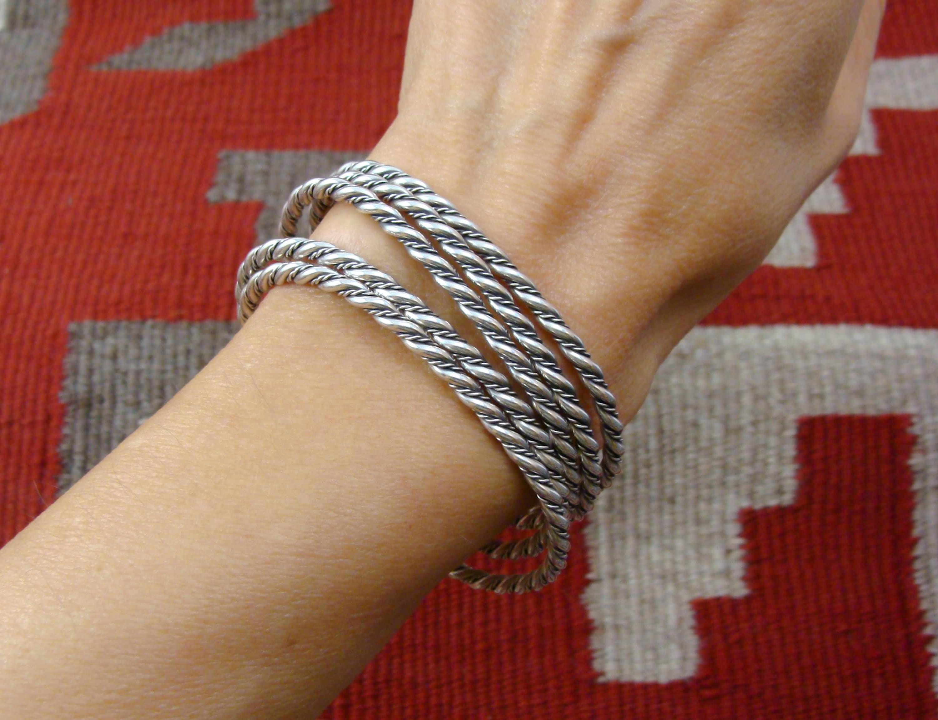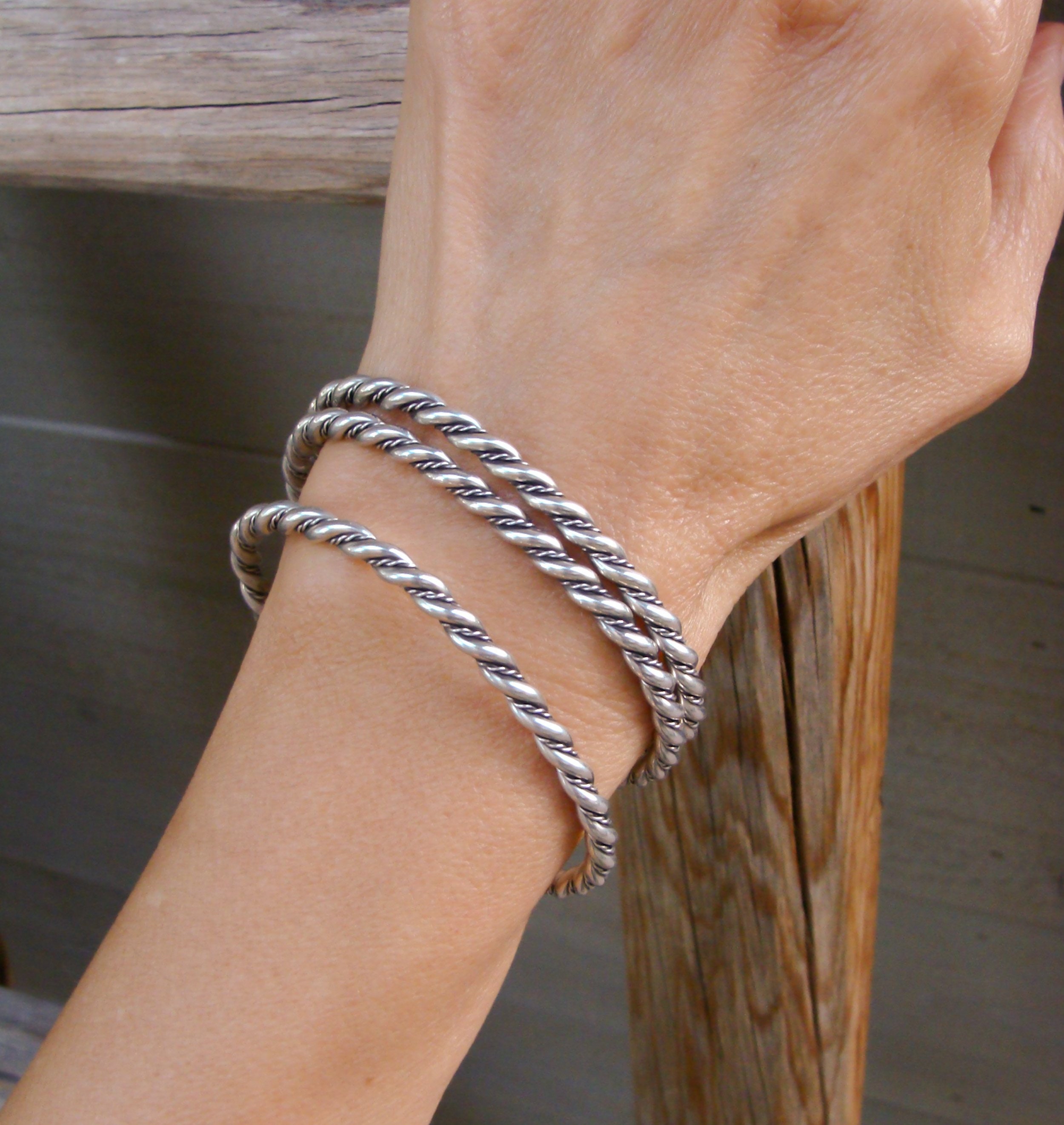 This rope twist bracelet is handmade from heavy gauge Sterling Silver wire. Wear it alone or stack it with other bracelets, it is sure to add a touch of style. This is a unique piece of jewelry that will be highly treasured for many years to come!