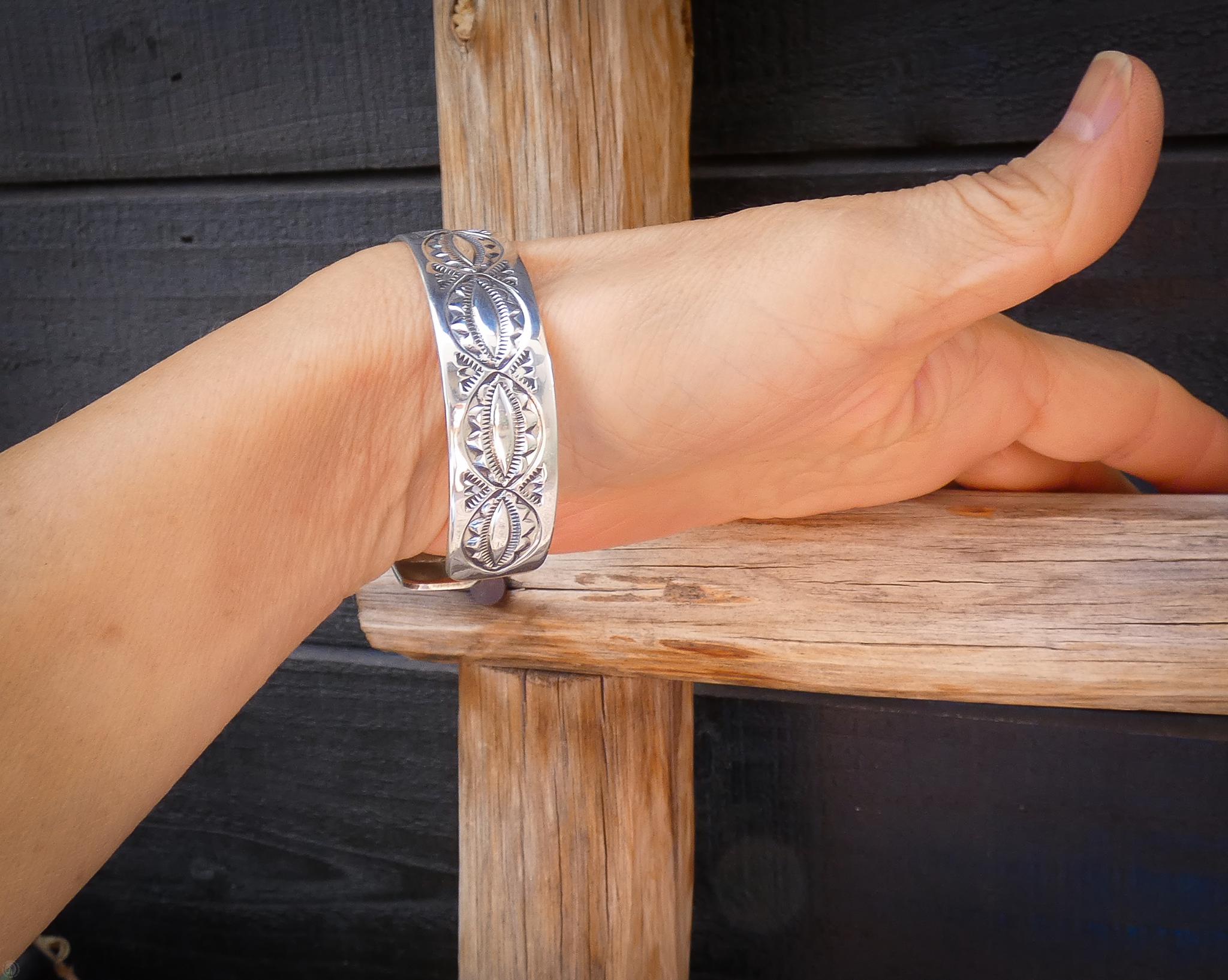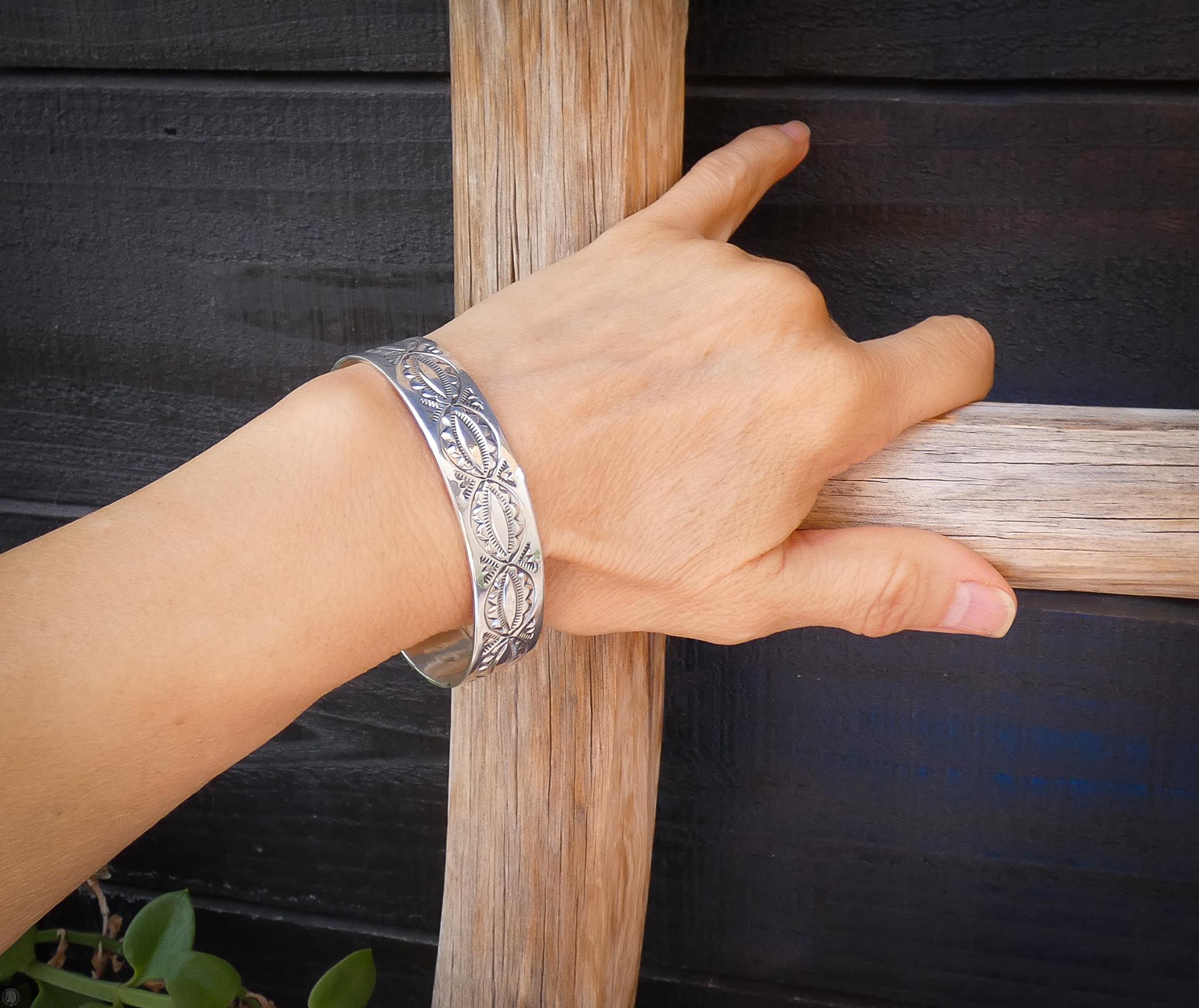 This vintage Navajo cuff bracelet is handcrafted from Sterling Silver. It is a simple, understated piece that you can wear with anything and add it to any outfit for extra personality! It features a hand-stamped design to add a touch of traditional Navajo style. Native American Handmade.