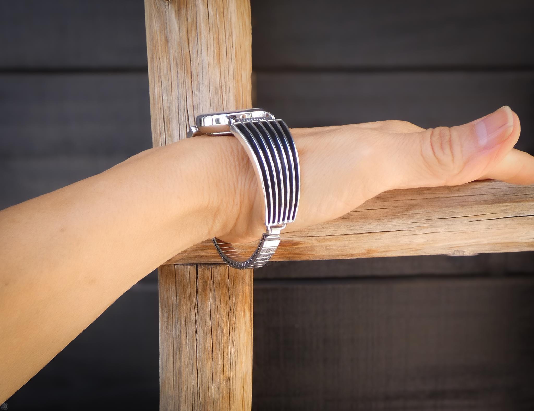 This Navajo women's track design watch is created in a contemporary timeless style, the perfect gift to yourself or someone special!