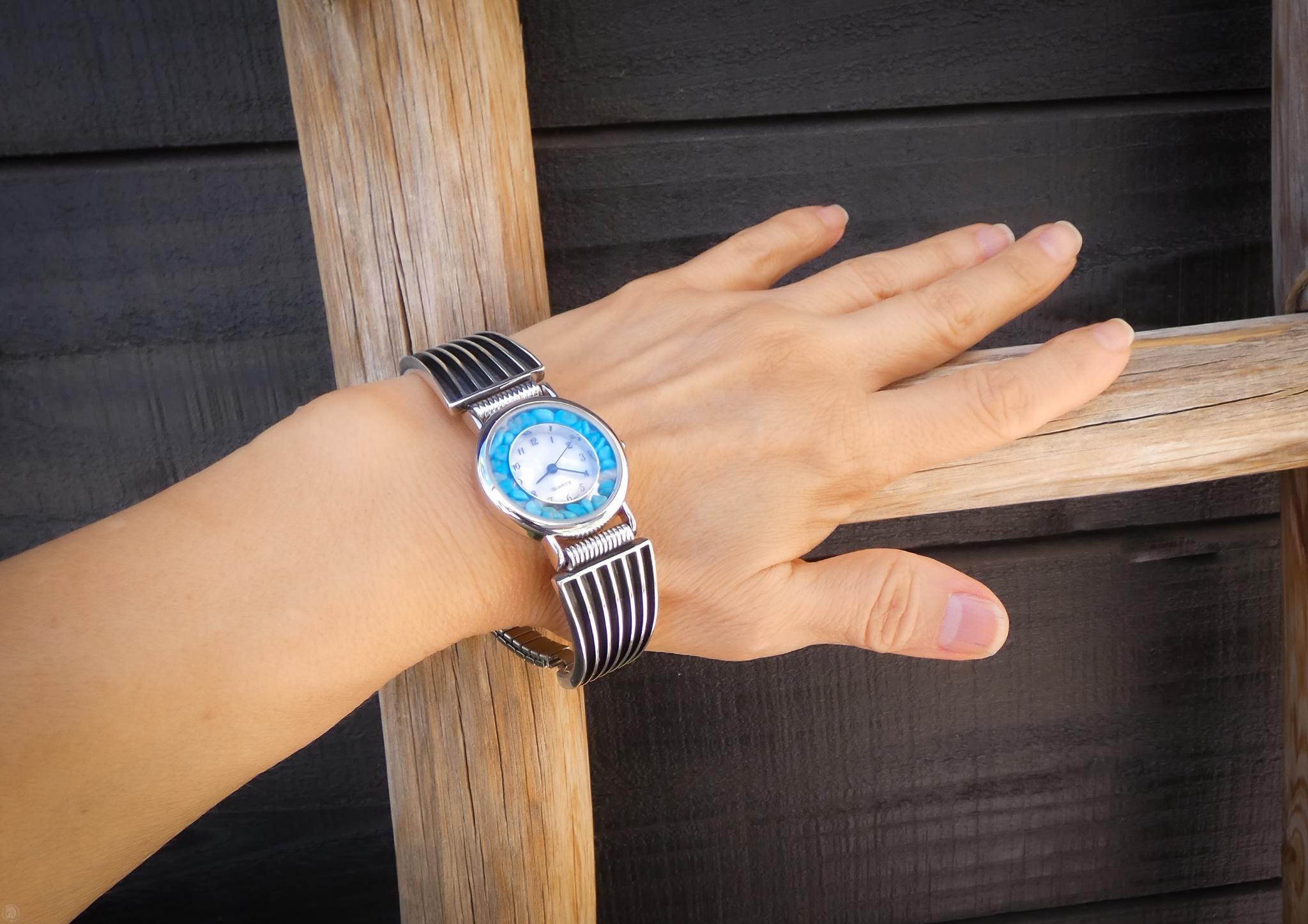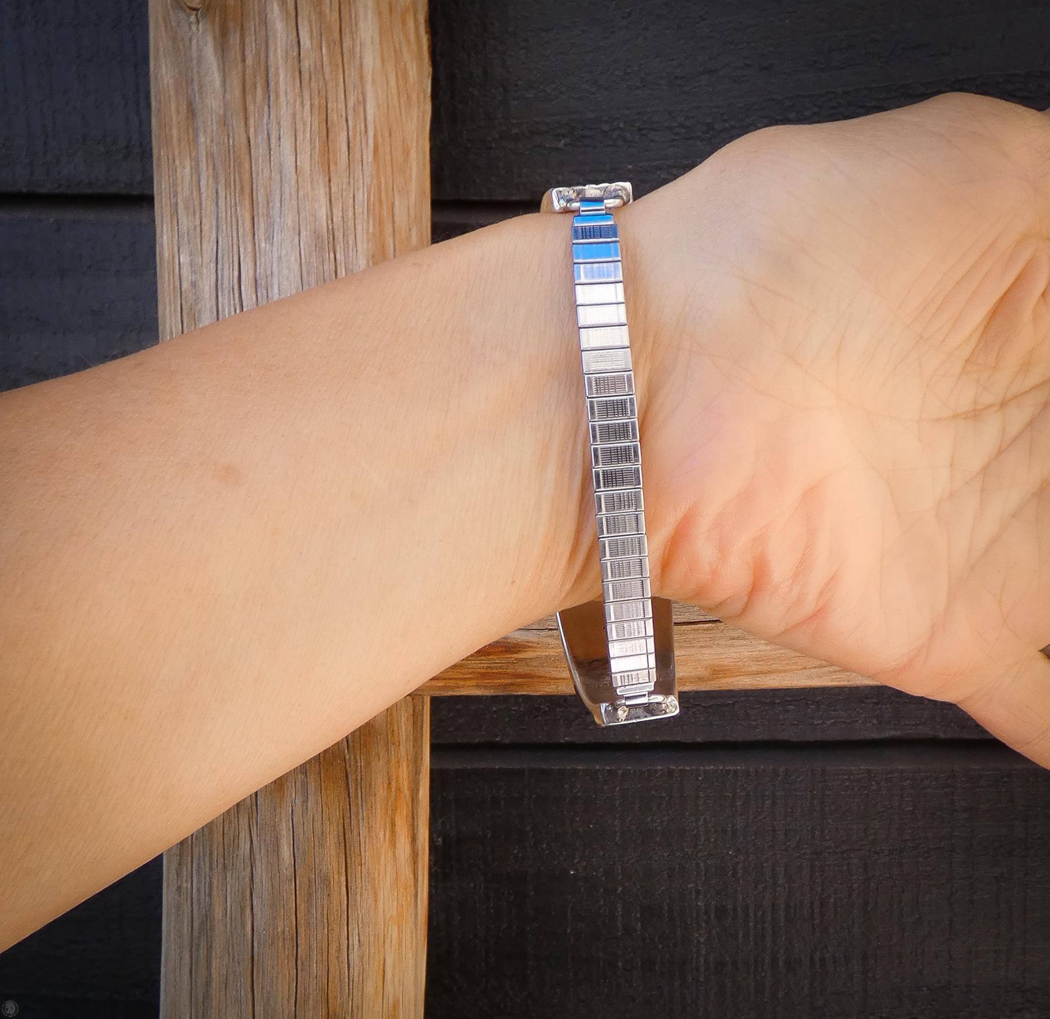 Watch Measures: 7.25" -- Please Measure over your wrist bones for best fit. Links can be added/removed. Please email me with your wrist size at the time of purchase.