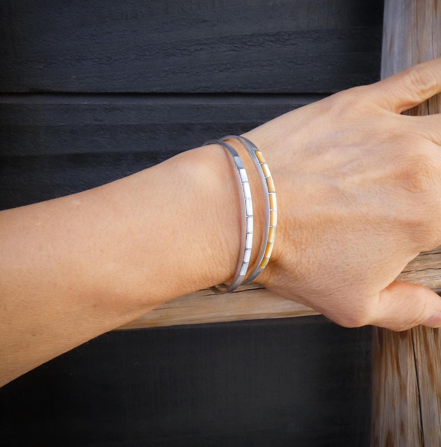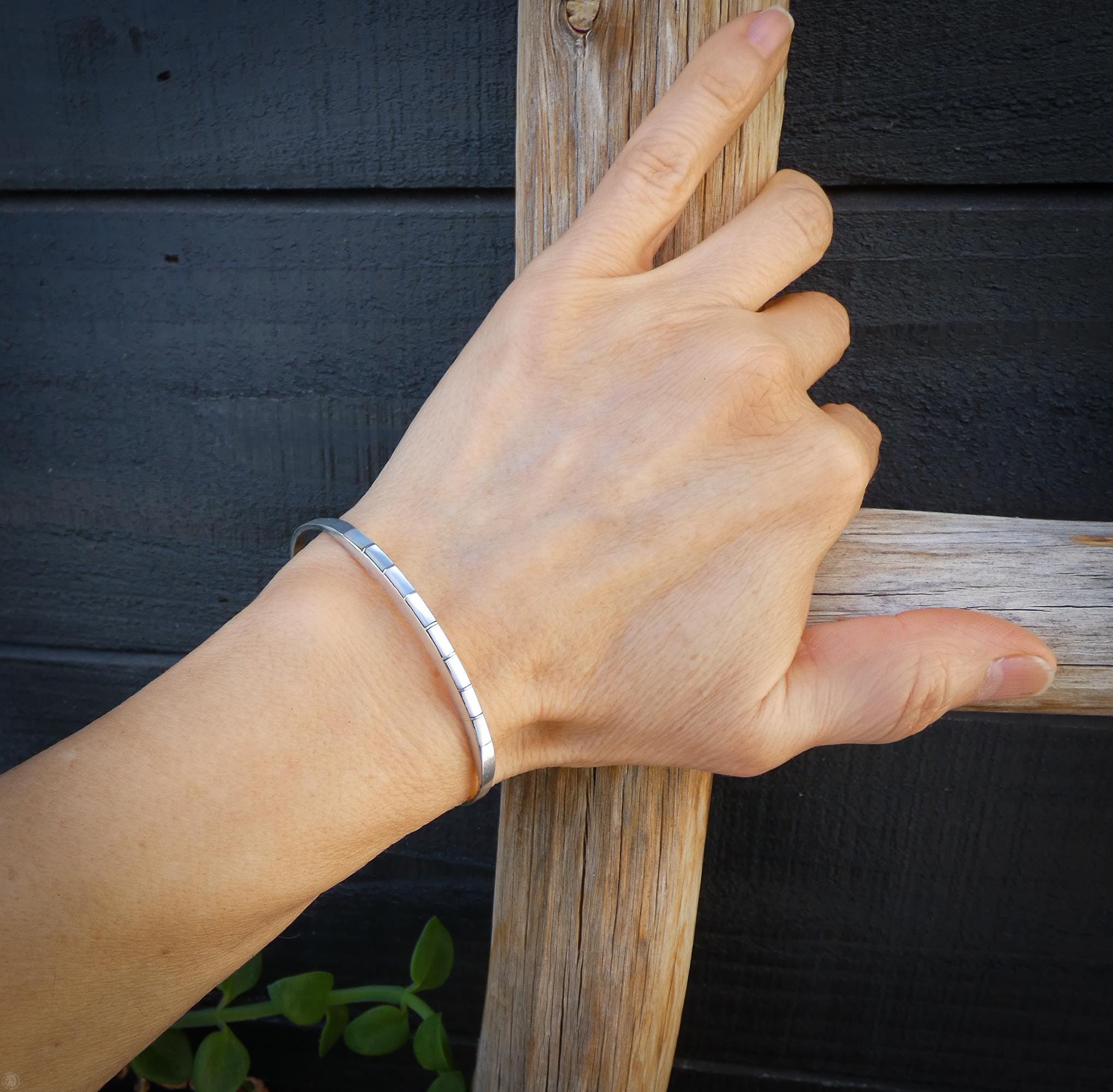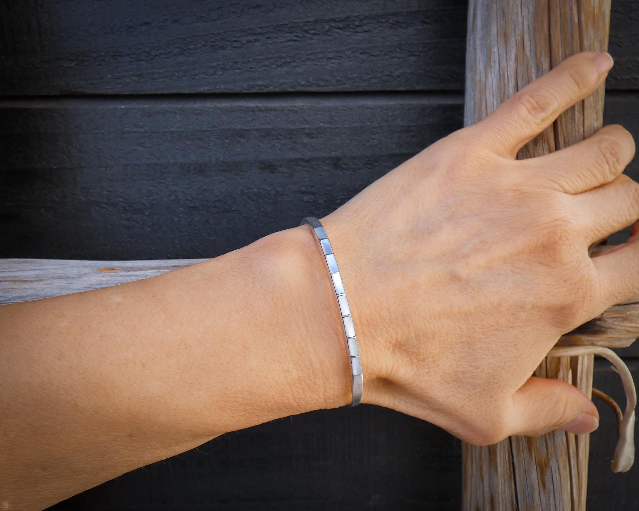Measuring 6" with a 1.25" opening (non-adjustable), this delicate piece weighs in at 4 grams—making it a subtle statement and perfect for stacking. This one-of-a-kind cuff is perfect for collectors or anyone seeking a feminine Southwest design.