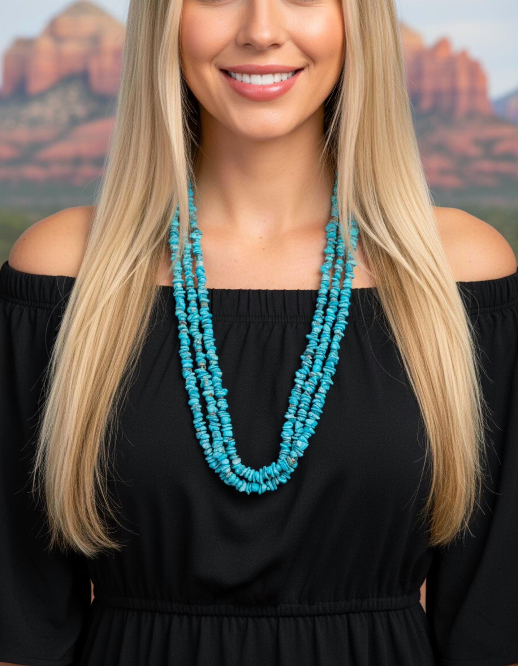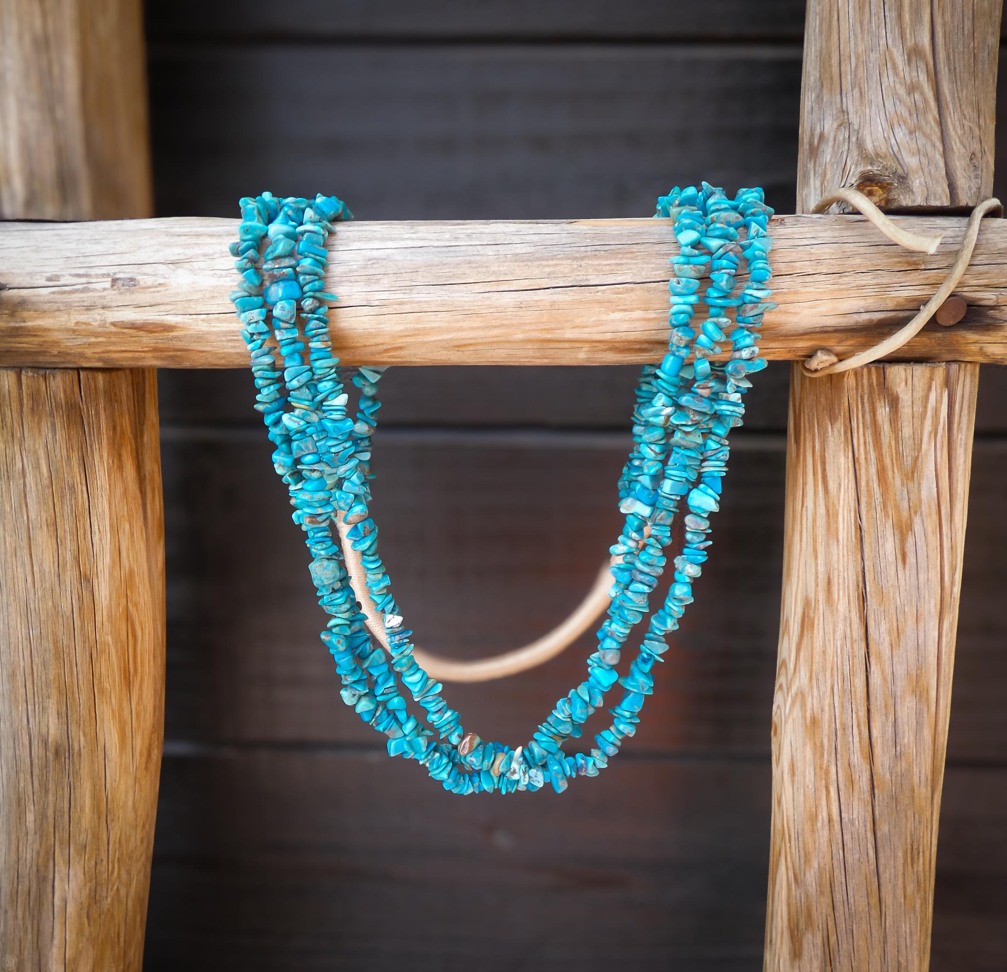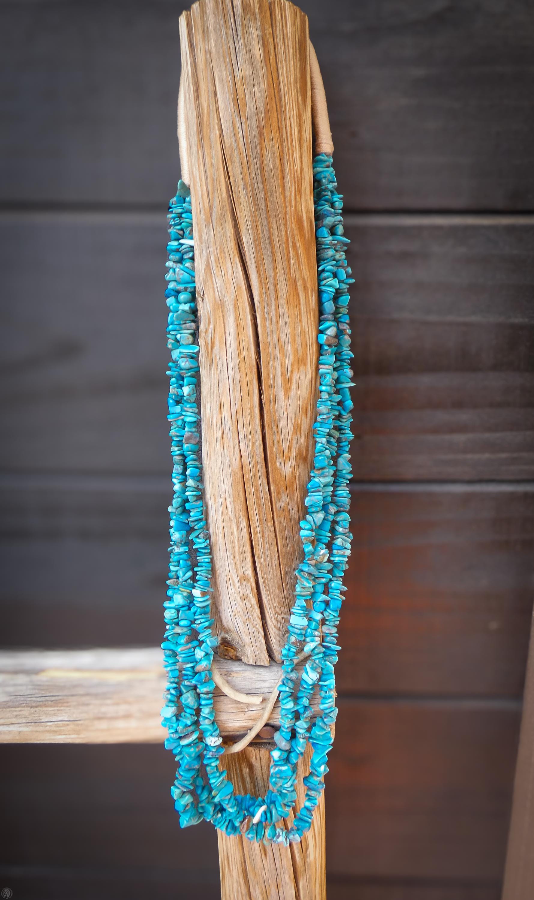This vintage Santo Domingo necklace is that vintage wardrobe accessory that you've been searching for. It is handcrafted with 3 strands of beautiful vivid Turquoise stones and pin shell. This is perfect for dressing up any outfit! Native American handmade.