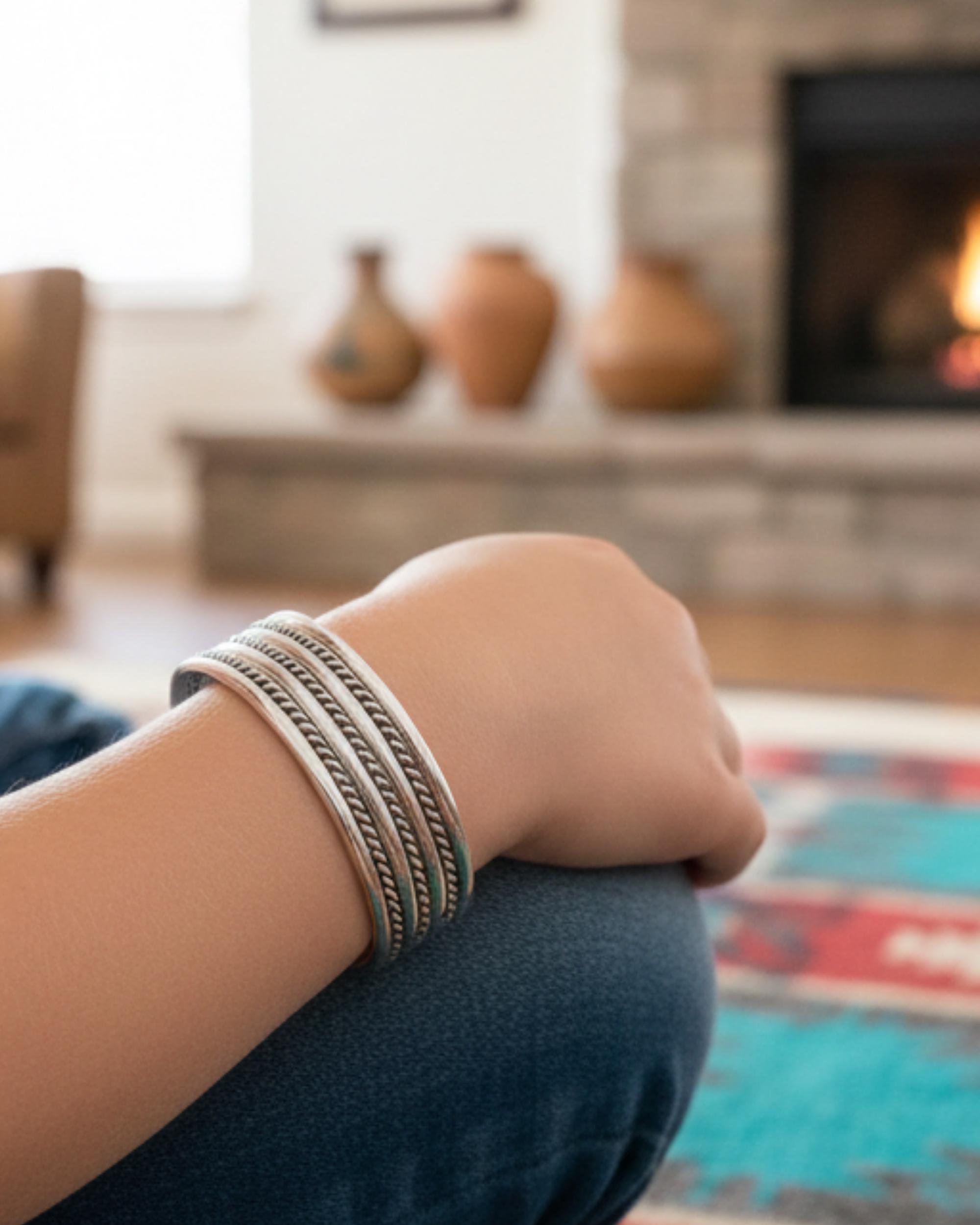 LOVE this bracelet. Great silver weight, and a perfect gift from the Southwest for new baby. Received very fast, I was surprised. Owner gracious, writes a note on the receipt...nice touch! Quality item.