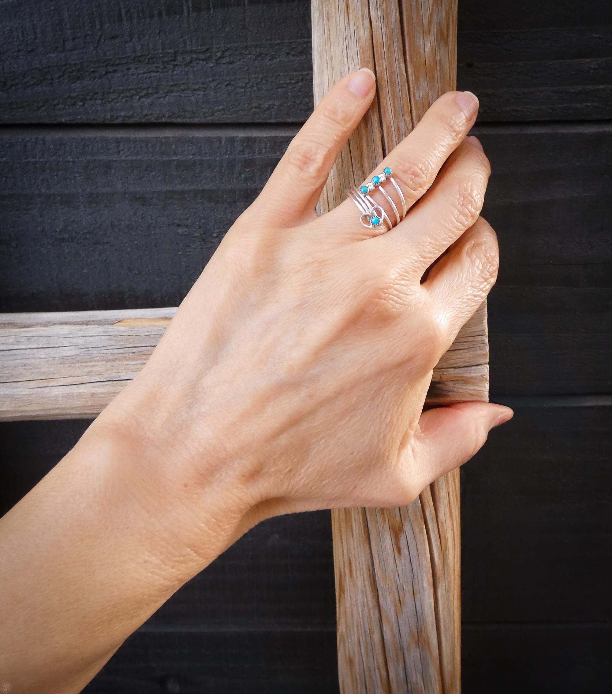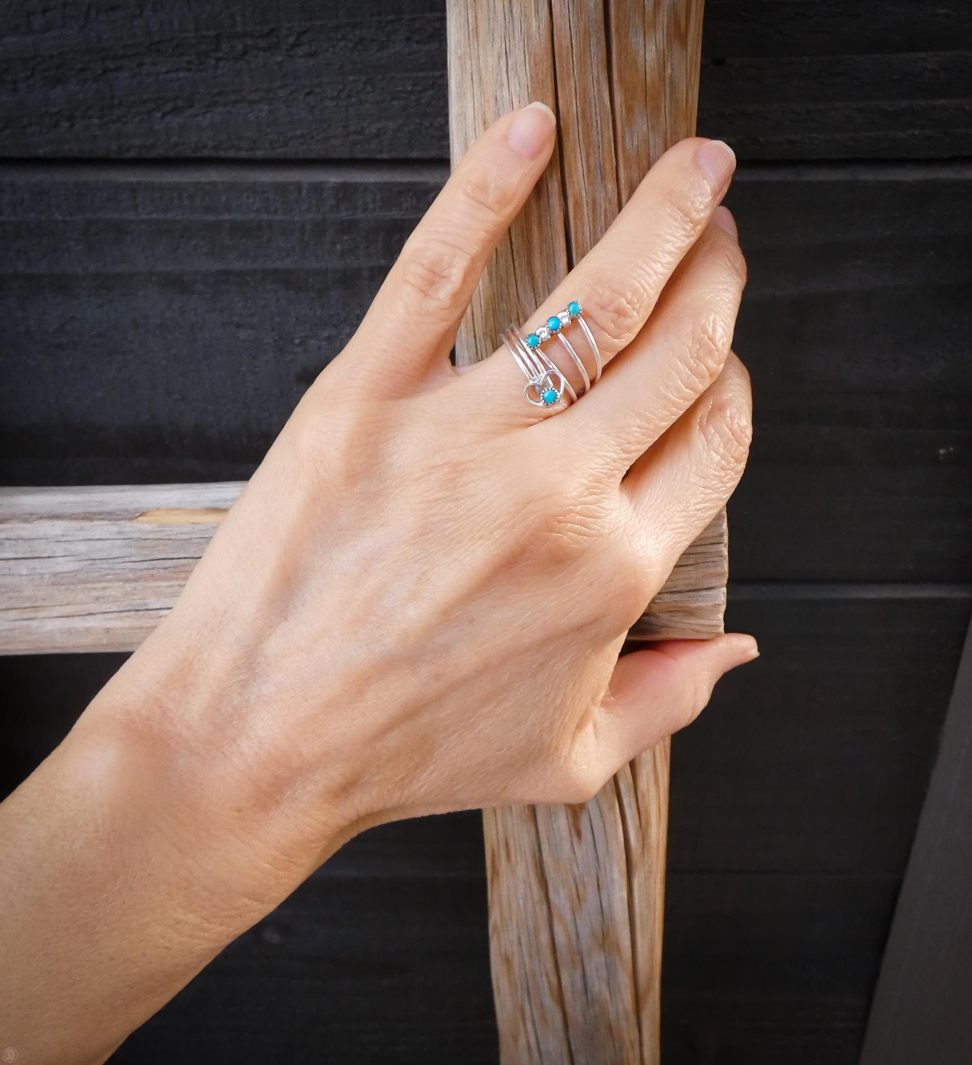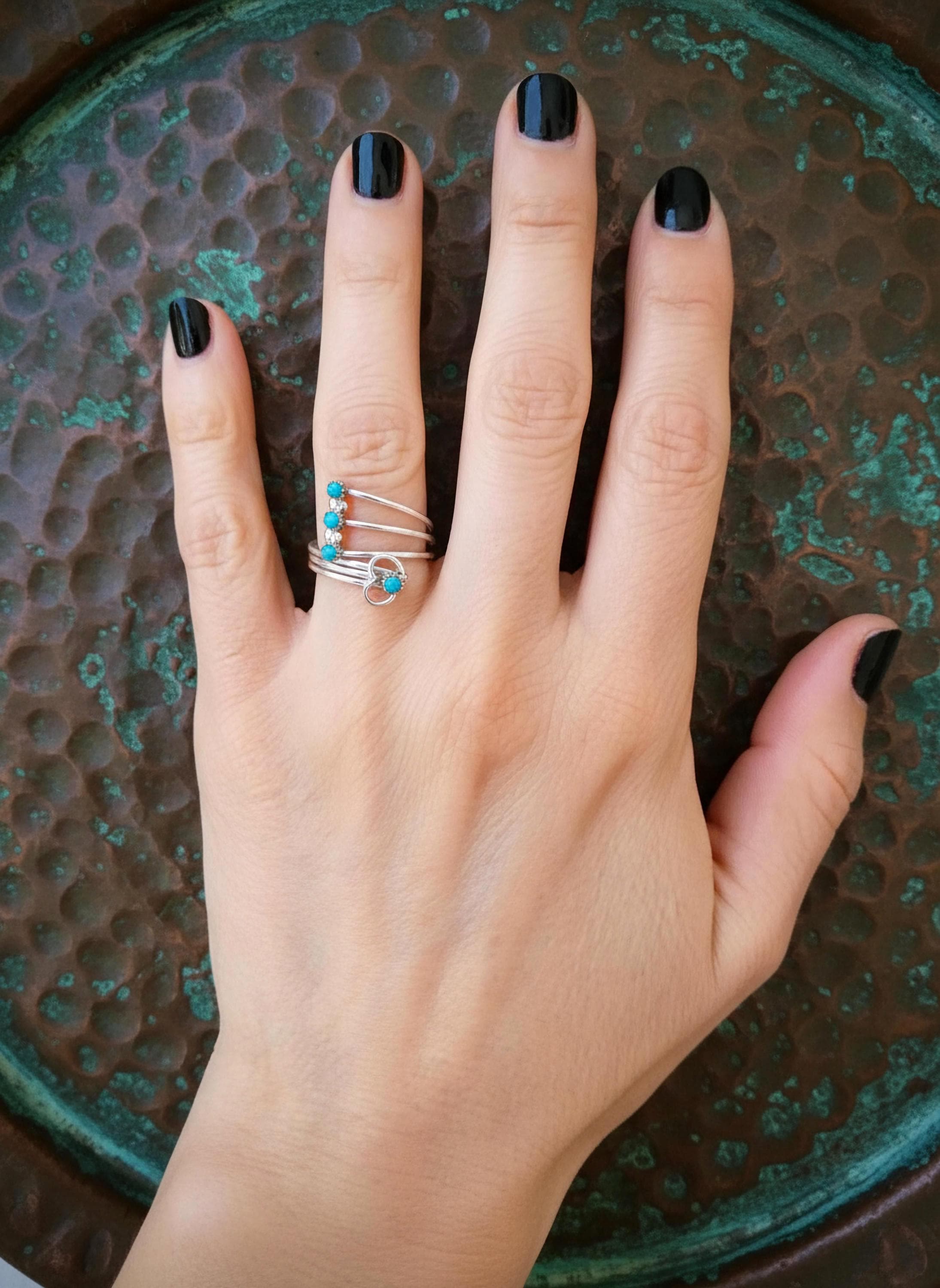 This delicate Zuni ring is made for a woman or girl with Sterling Silver and Turquoise. The styling of this ring is perfect for the adjustable comfortable design. This is perfect for art lovers who appreciate handcrafted Native American made jewelry!
