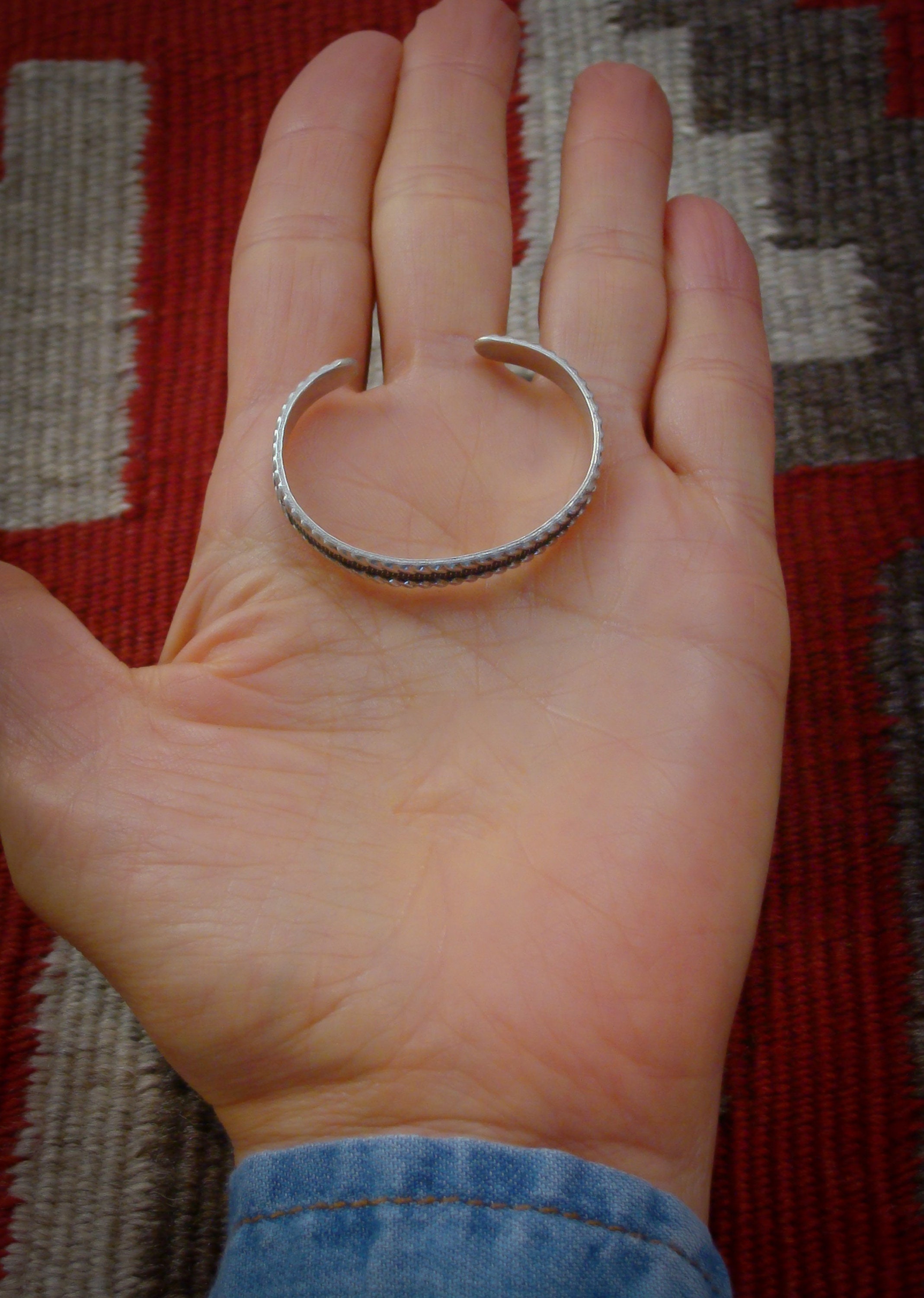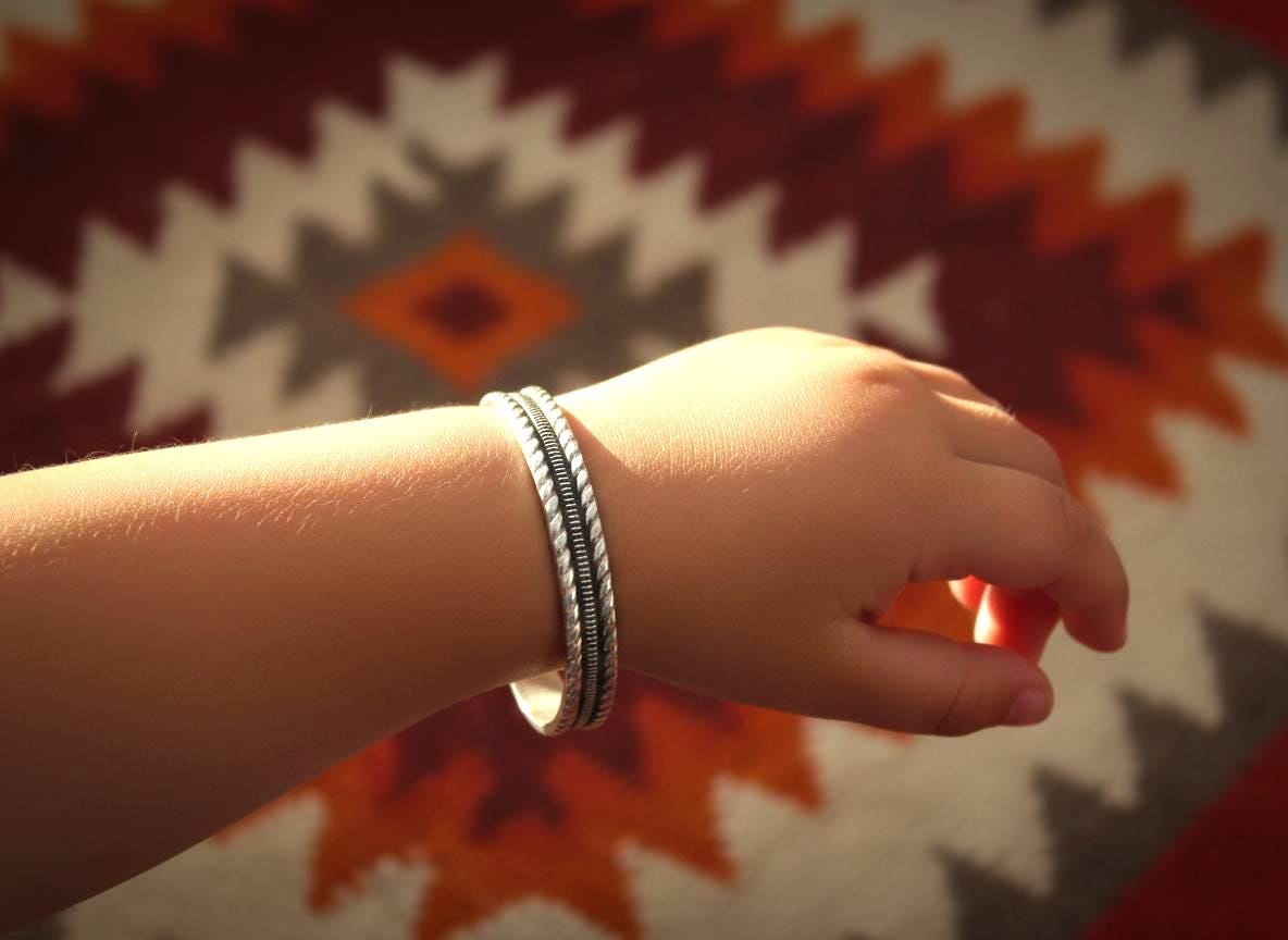 This baby bracelet is handcrafted from Sterling Silver into a traditional design. This is a unique piece of jewelry that will be highly treasured for many years to come.
